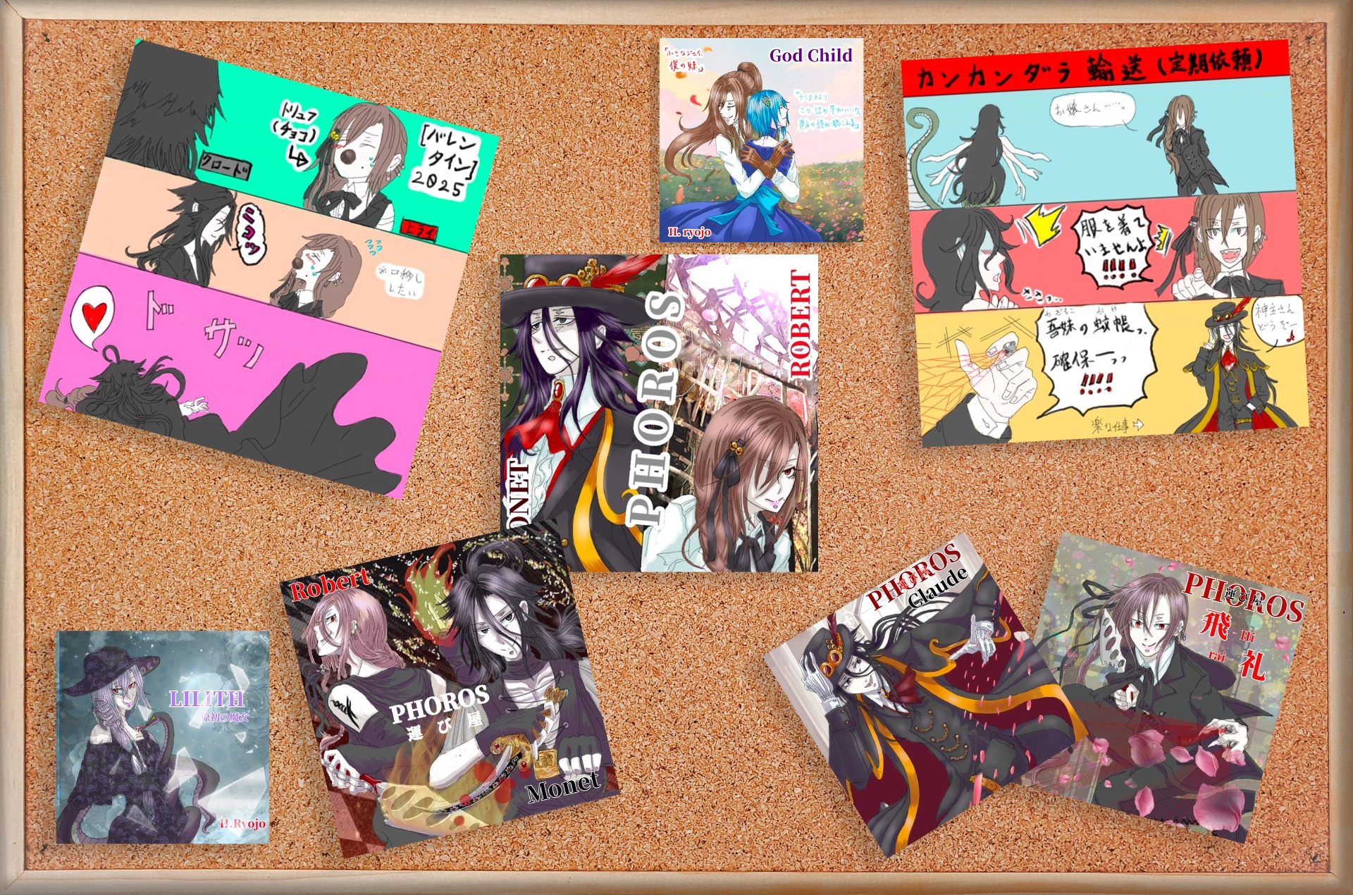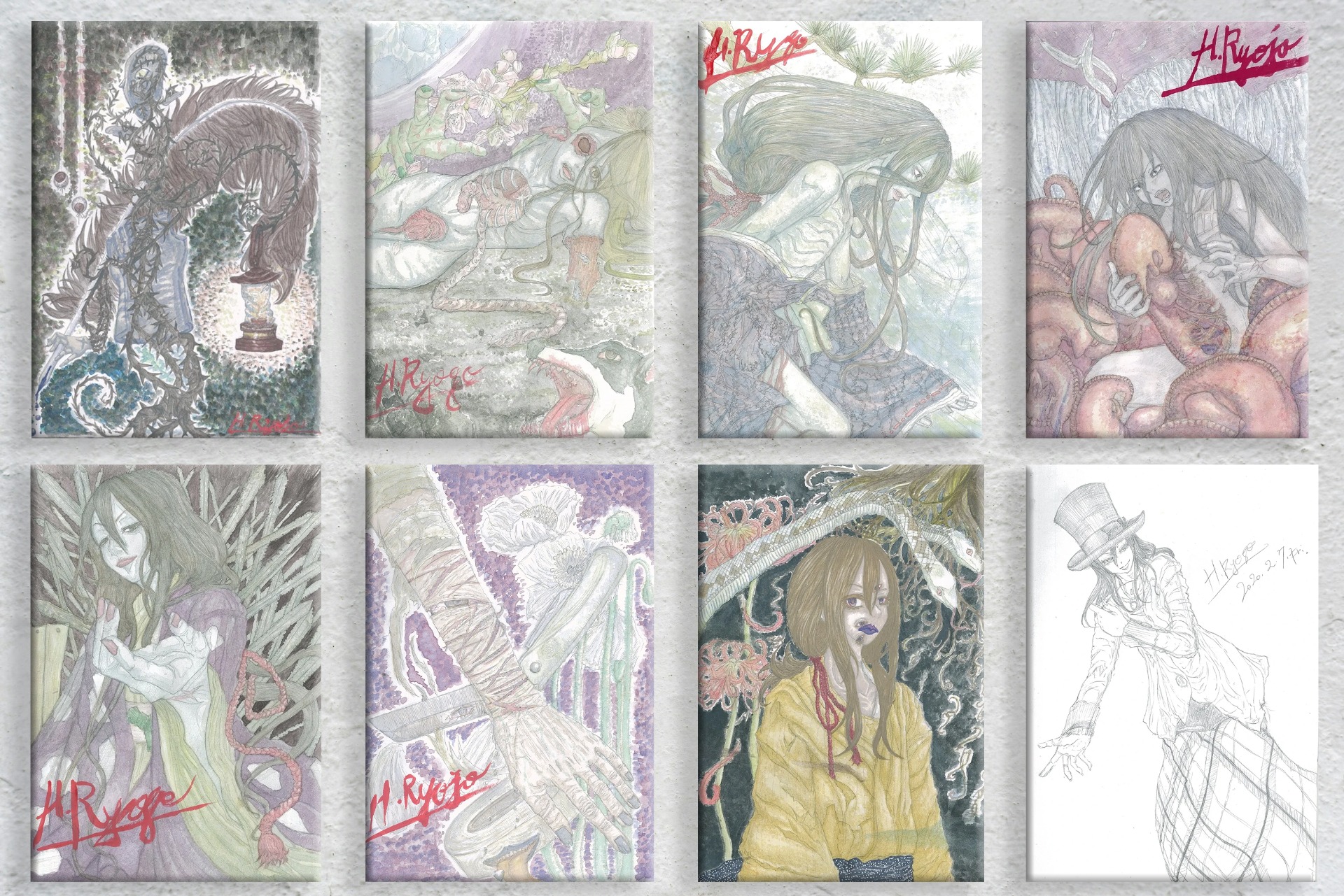 【自画像】①裏側 ②地獄に差す黒い陽光 ③芥子:花言葉は忘却 ④人道 ⑤刀葉林の上 ⑥天人の最期 ⑦血の池 ⑧あり合わせの衣装 ⑨お誕生日用